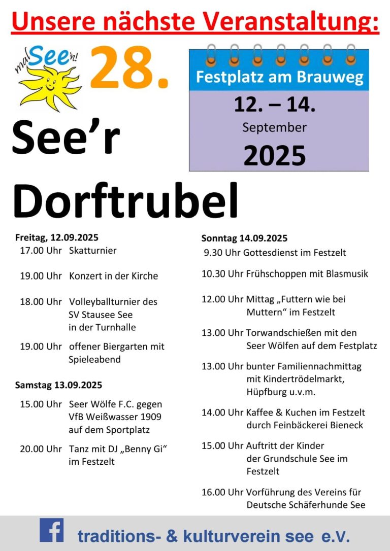 Es ist wieder soweit: Der 28. See'r Dortrubel findet vom 12.09 - 14.09 statt!