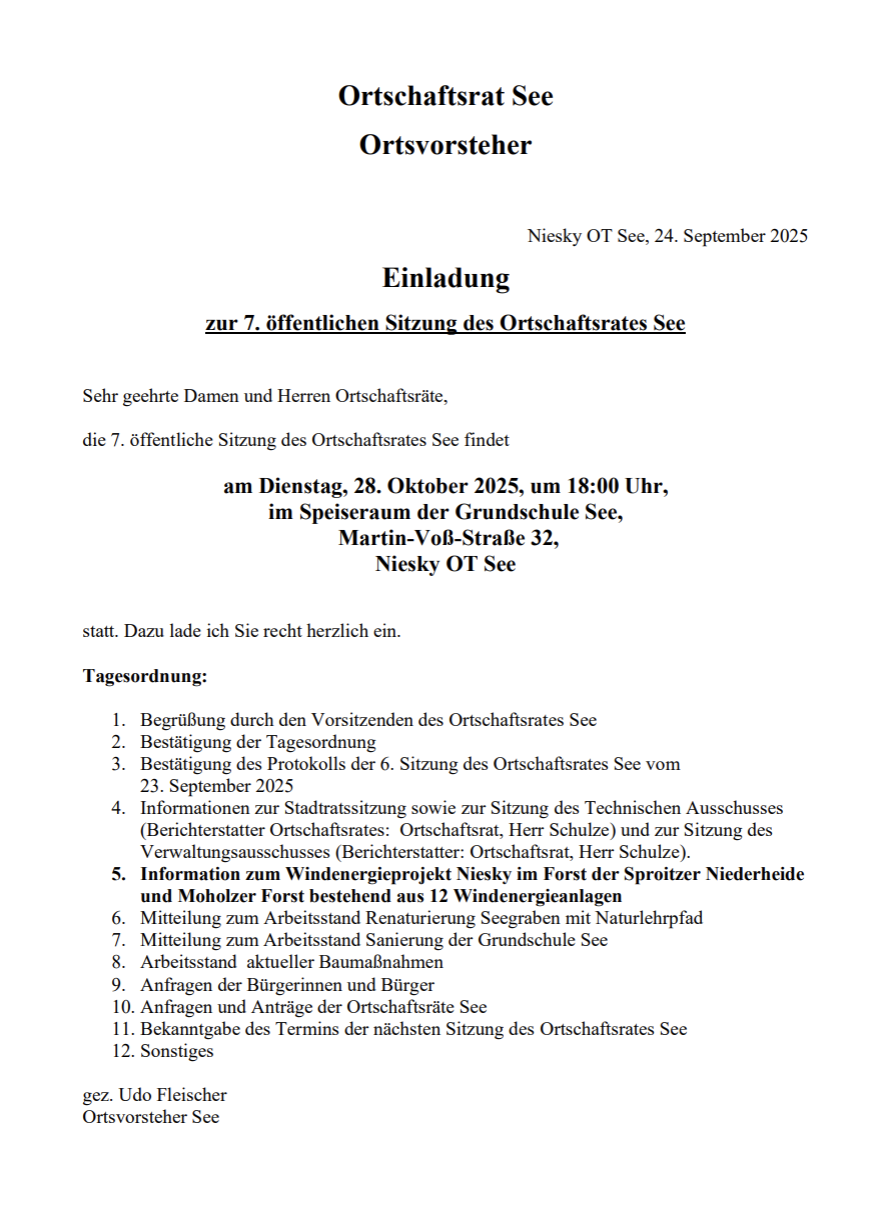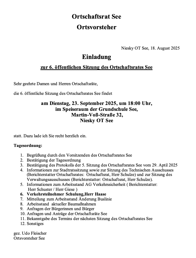 Aufstellung: Ortschaftsrat See